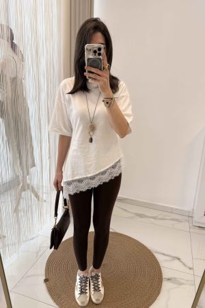 • Marka Model Etek Uçları Dantel Asimetrik T-shirt