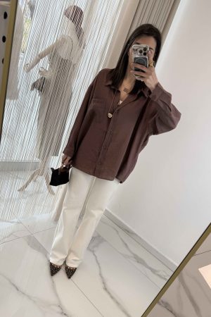 • Dantel İşlemeli Transparan Bluz Kahverengi